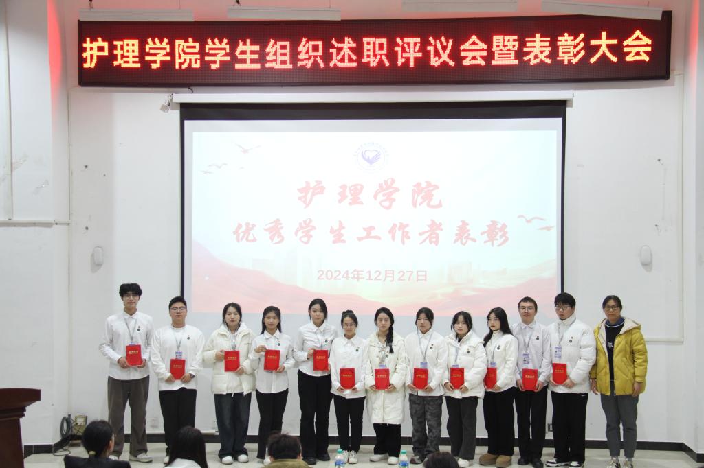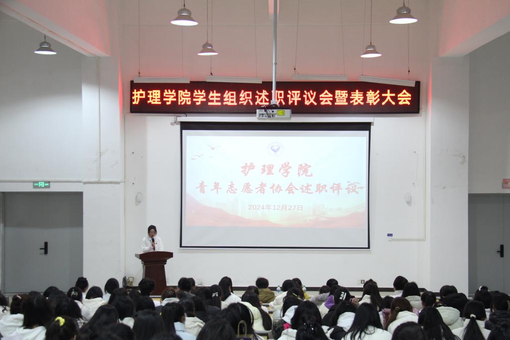 为加强学生组织建设、激发团队活力,全面总结本学期各项工作开展情况,12月27日,护理学院在和济楼阶梯教室召开学生会、社团工作部述职评议暨表彰大会。会议由团总支书记刘小三主持,党总支副书记曲晴,学工科科长胡祖昌及辅导员出席本次会议。