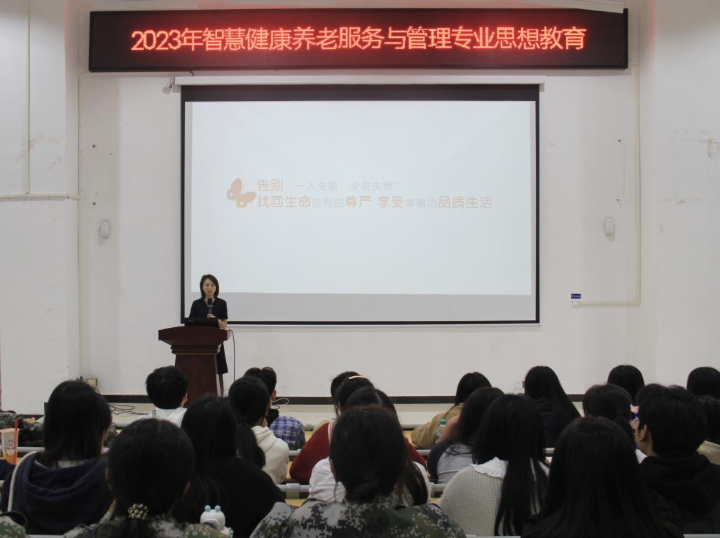 谭蓉详细介绍了以人为本、以服务为核心的泰康养老管理模式、“1+N”多学科照护团队和以医学、康复医学、健康管理三大医学中心,为居民构筑起“紧急救助—健康管理—老年康复”三重防线的泰康医院,帮助“泰康班”同学们了解企业文化和理念,对智慧健康养老服务与管理专业发展和就业有了更直观的认识。