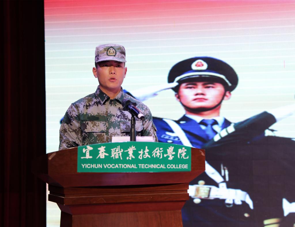 退役复学大学生士兵代表肖圣雄发言,他和大家分享了自己在部队的生活和学习情况,他说,当兵是自己从小的梦想,保家卫国是每一位同学的荣誉与义务。他号召大家积极参与到征兵活动中来,为国家贡献自己的青春力量。