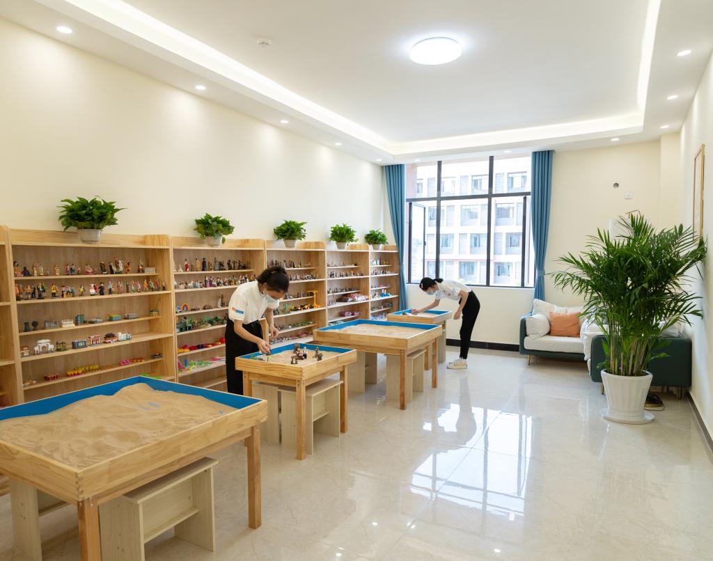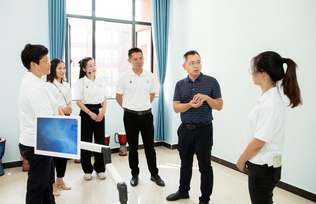 刘叶建回顾了学校心理健康教育中心的成长历史,介绍了新校区心理健康教育中心。中心新址位于日新楼A区二楼,占地500多平方米,拥有8个大小不一、功能各异的功能室,主要有个体咨询室、预约接待室、沙盘游戏室、VR虚拟室、情绪宣泄室、音乐放松室、团体辅导室、团体活动室,能满足学校各类心理健康教育、心理健康服务等需要。