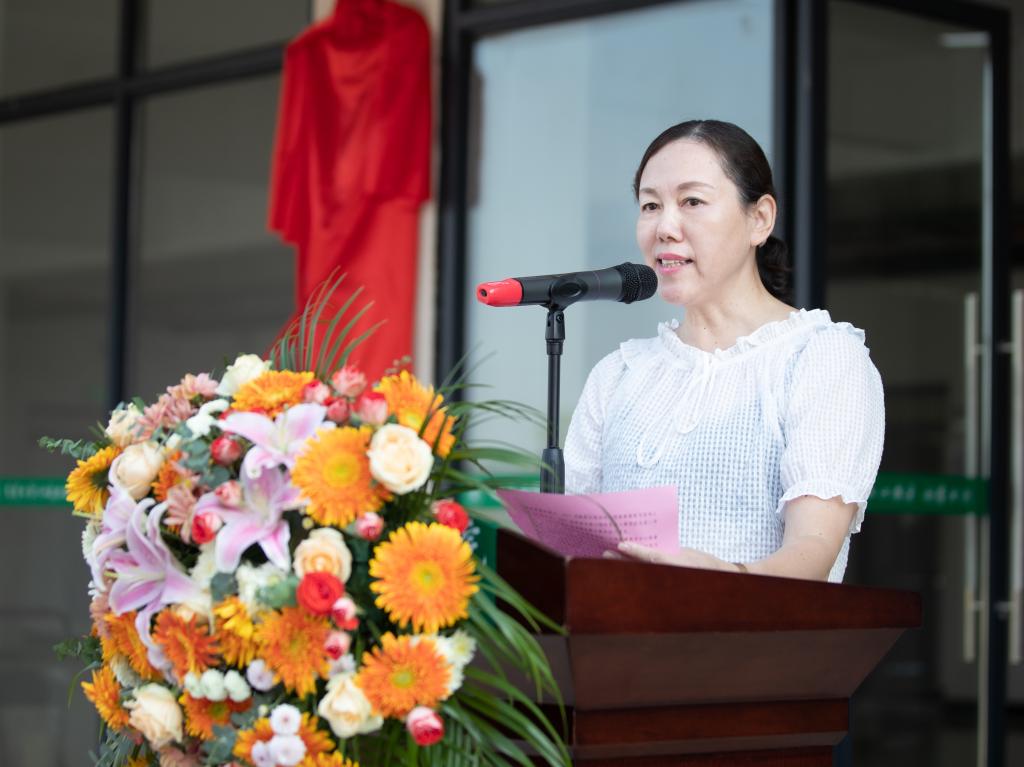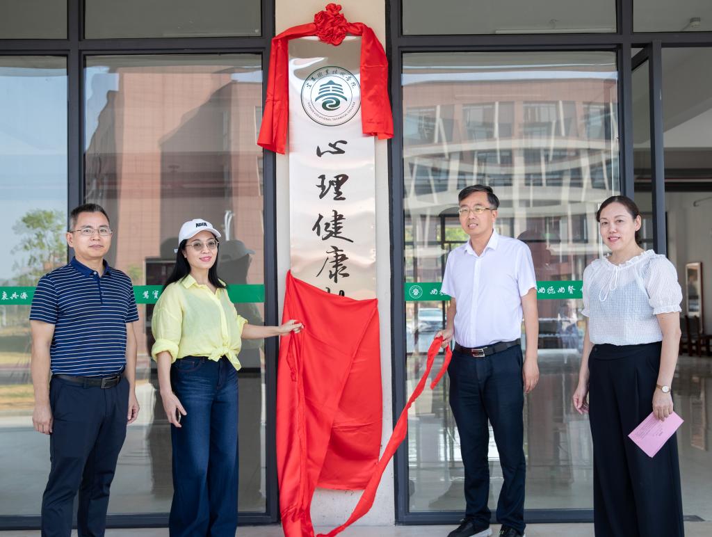 校领导邱军、易滨秀、张印华为心理健康教育中心揭牌。