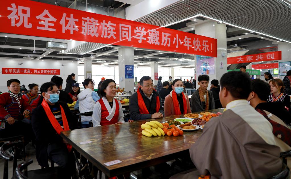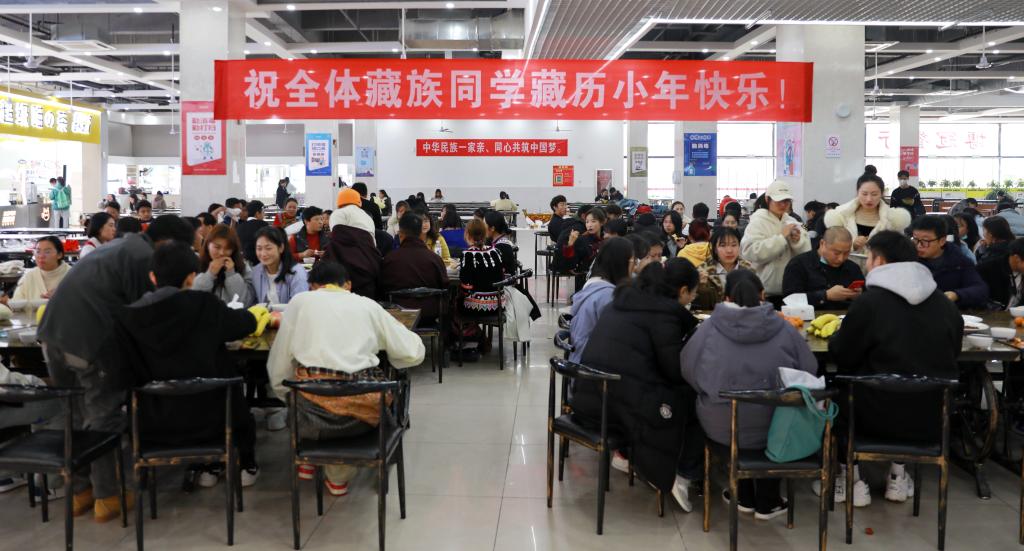 伴随热气腾腾的卡塞、藏面、疙瘩面汤等具有浓浓藏族特色的美食,欢快活泼的锅庄舞、恰恰舞,在场的师生融入到愉悦的节日气氛之中,整个大厅洋溢着浓厚的新年气息。