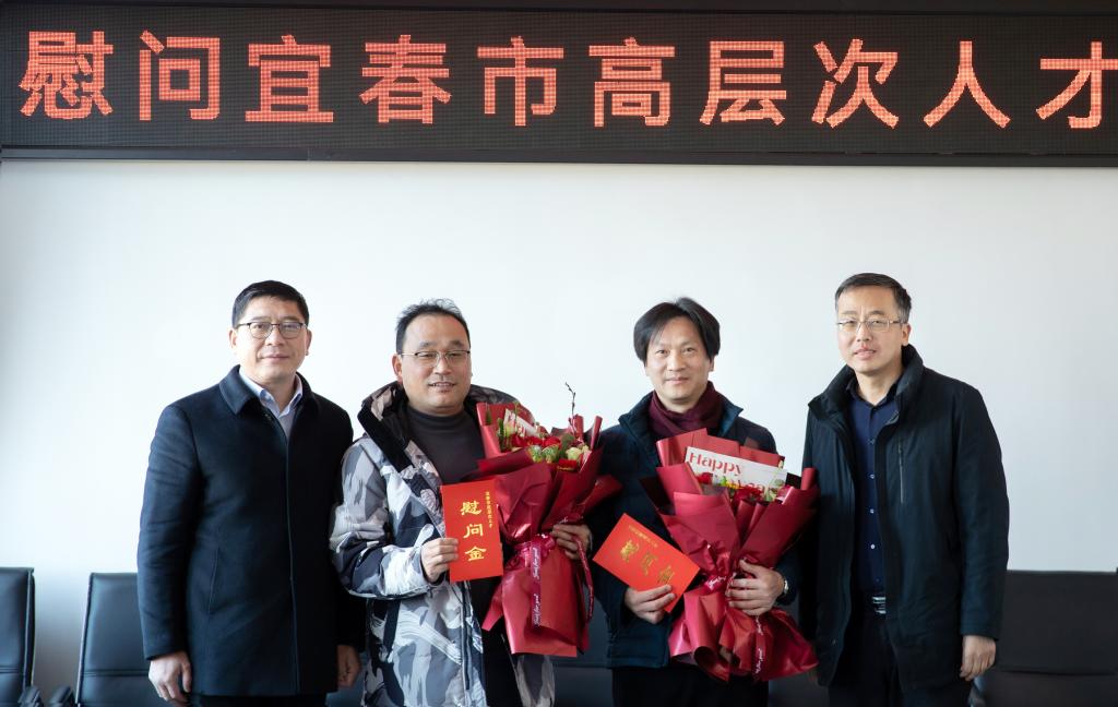 本站讯(人事处 余宏军)1月18日,在新春来临之际,受市委人才办委托,学校党委书记任军和党委副书记、校长邱军走访慰问市高层次人才——伟德官网副教授宋宝来和欧阳富萍,送上鲜花和慰问金。学校党委委员、副校长刘叶建,党委委员、宣传部部长马天娥,人事处处长熊淑萍陪同走访慰问。