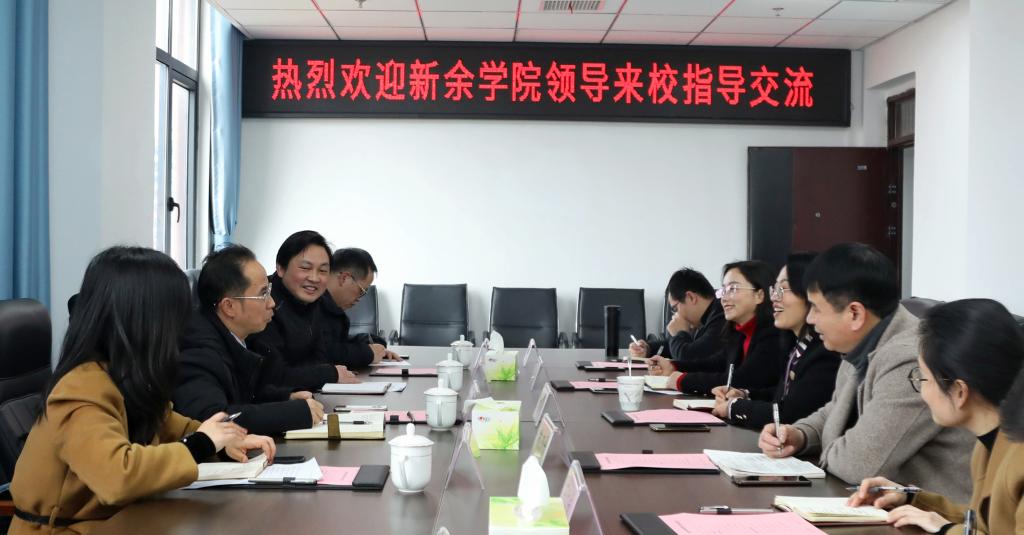 本站讯(教务处 宋慧娟)为深入推进伟德官网与新余学院开展联合培养本科层次人才工作,2月15日下午,新余学院教务处处长周小云、副处长肖宗湖,外国语学院副院长张莉、艺术学院副书记简琦一行莅临伟德官网指导交流。伟德官网党委委员、副校长易滨秀,教务处处长熊杰平,师范学院党总支书记邹晓英,教务处副处长王江南、李浩然,国际教育学院副院长杜欣宇参与座谈交流。