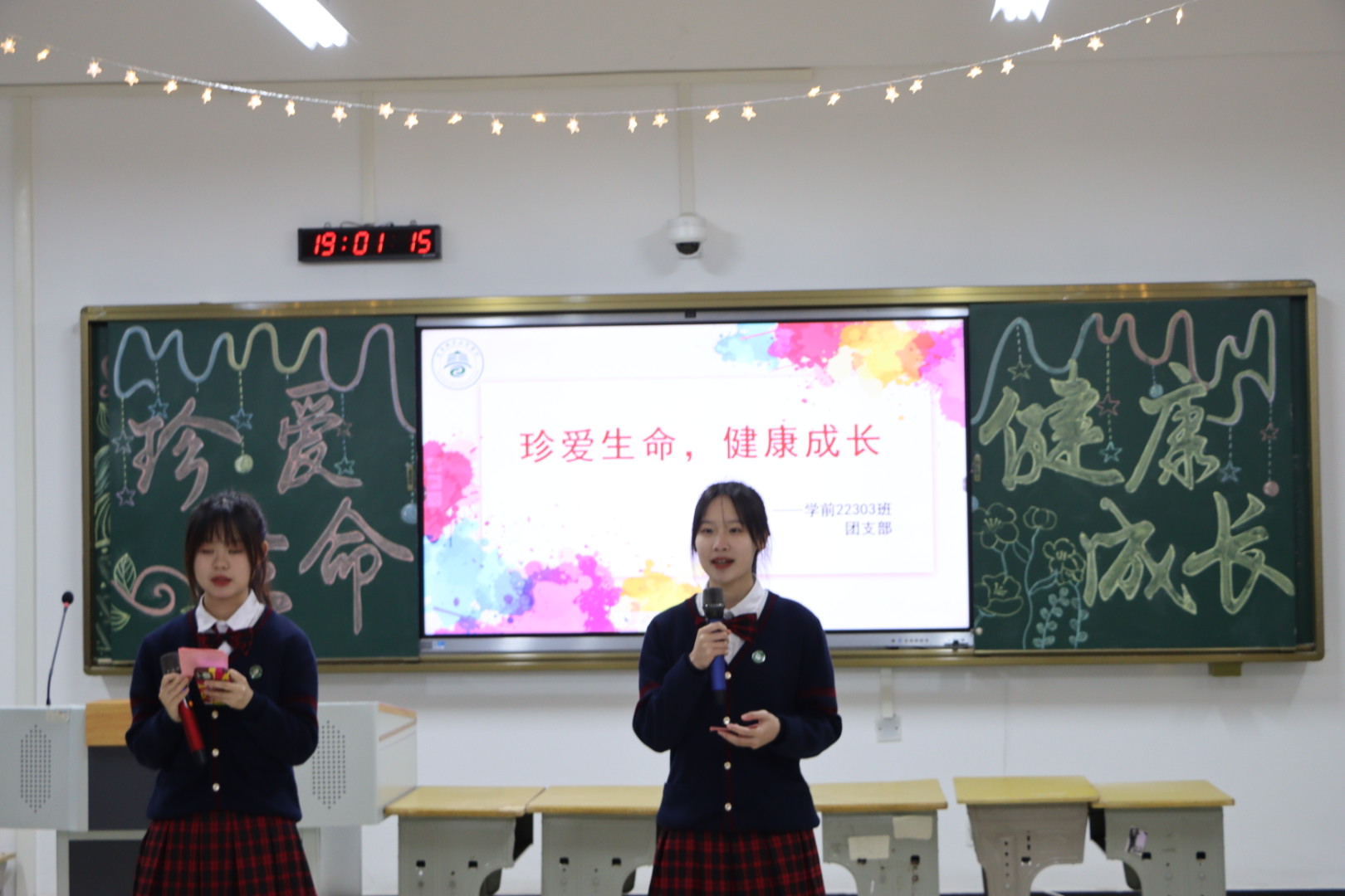 活动当晚,学前教育22303班团支部紧扣“珍爱生命,健康成长”主题,通过观看学习强国平台视频导入,指导同学们学会用“五感”感知生活的温度,从点滴中追寻生命的美好。随后进行的演讲《生命的意义》深刻诠释了生命存在的真谛与意义,情景剧《遇光》则引导广大学子积极融入学校大家庭,勇敢成为自己的那束光,绽放出属于自己的青春光芒。《树洞悄悄话》游戏环节,立意新颖、主题鲜明,鼓励同学们及时向同学、老师分享生活学习中遇到的困惑和思考,直面青春,健康成长,树立积极的人生观和价值观。最后,整场活动在大合唱《孤勇者》中落下帷幕。