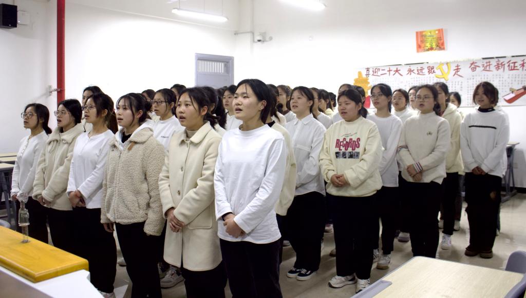 此外,各班级团支部也通过诗词朗诵、观看视频、歌曲合唱等形式表达自己对此次活动的理解。护理学院22303班团支部采用歌唱和朗诵的形式,诠释了生命的价值,展现出学子们对生命的敬畏与讴歌,荣获此次活动第三名。护理学院22301班团支部的同学们则通过合唱《倔强》和《满江红》,以热情饱满、洪亮有力的声音,彰显了新时代青年坚韧顽强的蓬勃生命力,荣获此次活动第二名。师范学院学前教育22303班团支部作为本次示范性主题团日活动团支部荣获第一名。