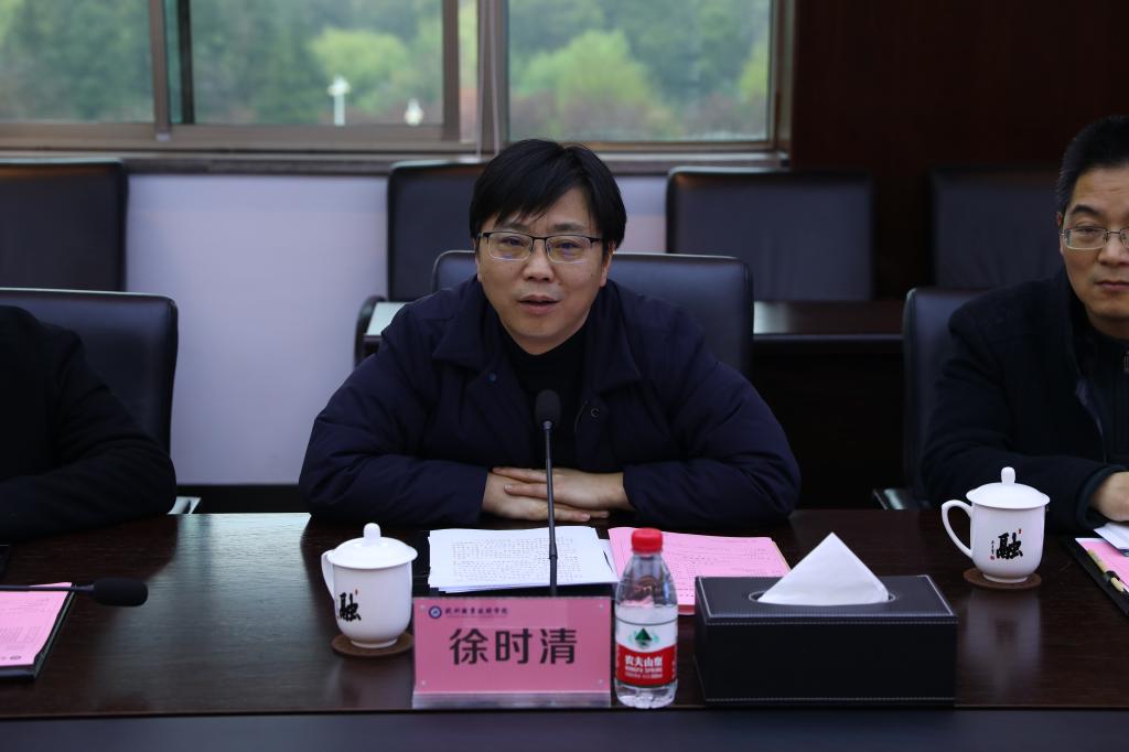 徐时清代表学校对邱军一行表示热烈欢迎,希望今后两校多多合作。观看杭州职业技术学院宣传片后,徐时清说,学校抓住了改革的每个关键点,一步步由优质校、全国骨干高职院校成长为国家“双高计划”第一轮建设单位,走出了一条高速高质发展之路。在谈到学校发展时,徐时清强调,得益于学校重点解决三个问题,一是解决办学属性的问题。杭州职业技术学院因“杭”而生,要解决姓“杭”的问题,解决为区域经济建设服务问题,所以学校的办学定位为“立足钱塘区,服务杭州市,助力长三角”。二是解决类型的问题。即职业性问题,走职业教育类型发展道路,产教融合、校企合作和工学结合。在全国首创“校企共同体”办学模式,打响友嘉模式、香港达利模式、特种设备模式等校企合作共同体品牌。三是解决高等性问题。坚持文化育人,在学生培养方面,将“工匠摇篮”作为办学目标,以文化建设为抓手将高质量发展与可持续发展结合起来。