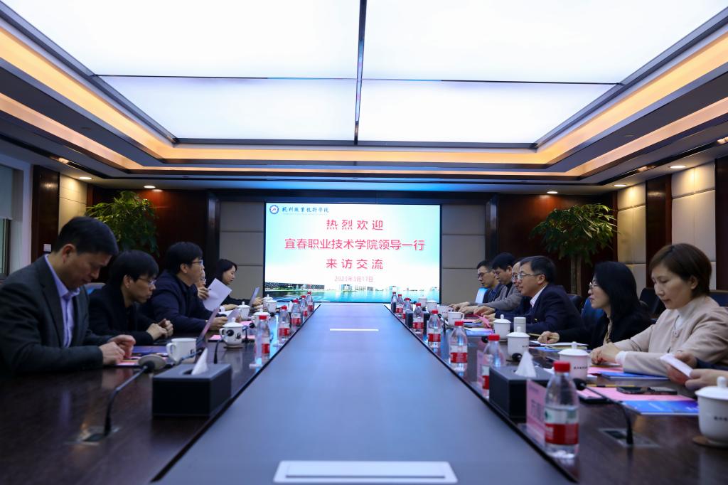 邱军对杭州职业技术学院的盛情款待表示衷心感谢。邱军介绍学校基本情况后,并说明此行来意。他表示,浙赣两地人缘相亲,两校地缘相近、业缘相融,具备得天独厚的合作条件。杭州职业技术学院作为国家“双高计划”高水平学校建设单位,在“双高”建设、校企共同体、专业群建设、校园建设等方面的典型实践经验值得伟德官网认真学习与借鉴。伟德官网将坚定不移对标对接杭州职业技术学院,希望以此次学习交流为契机,进一步深化务实合作、携手互助共进,实现优质教育资源共建共享,提升服务学生全面发展和区域经济社会发展能力。