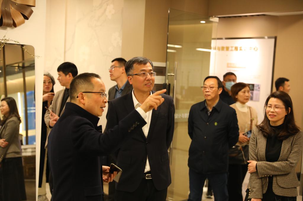 邱军一行在杭职“双高”建设办公室主任徐高峰详细介绍下,依次参观了达利女装学院、特种设备学院、彩虹鱼康复护理学院。随后,双方在行政楼528会议室进行交流座谈。