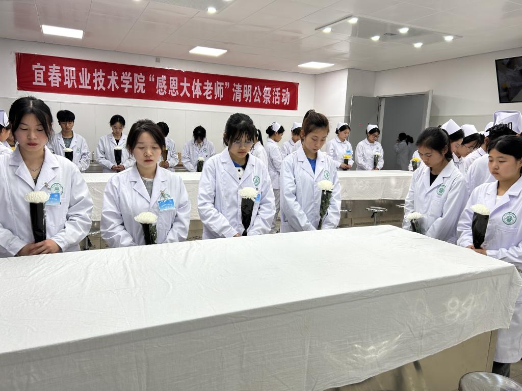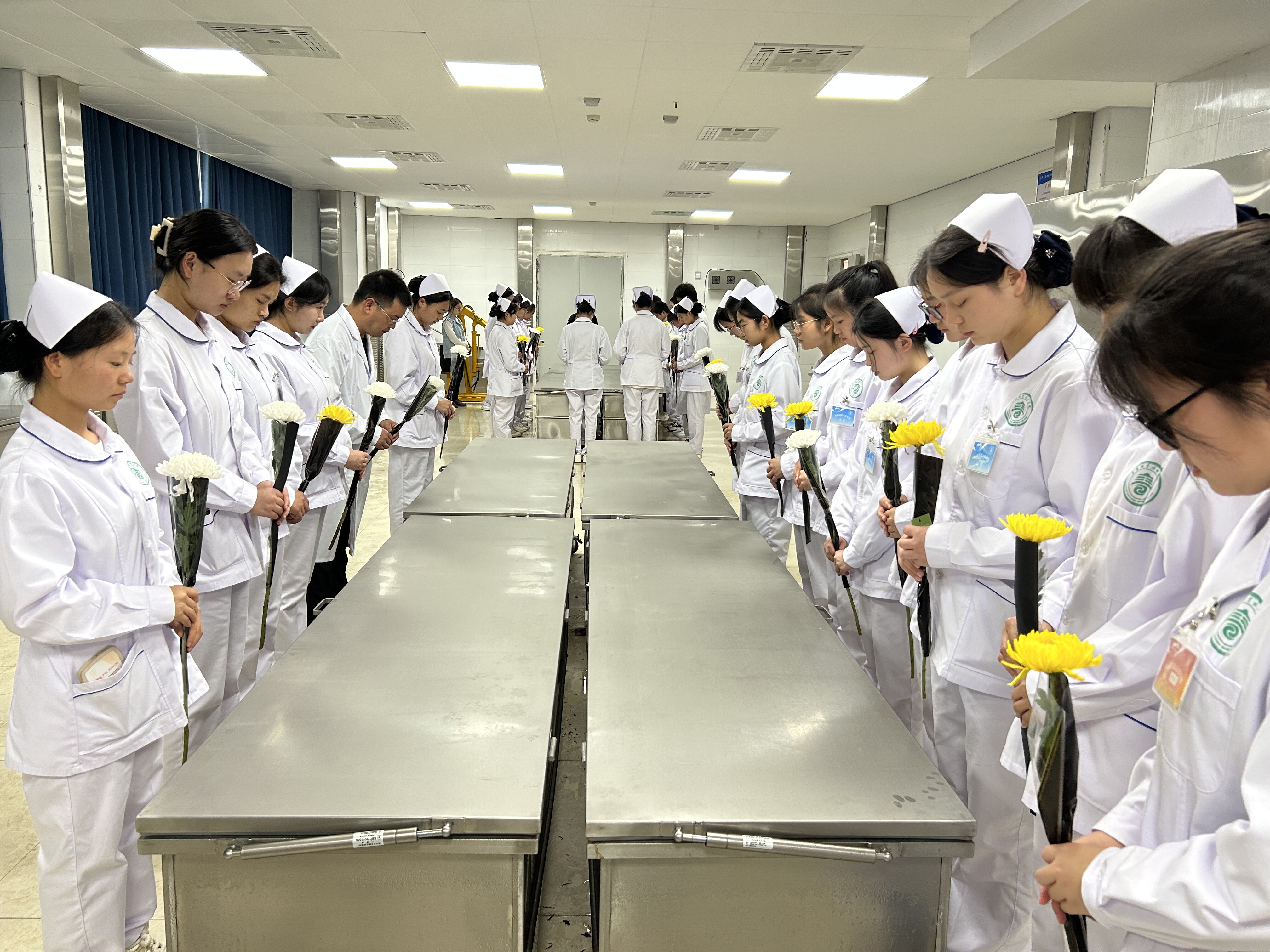 《人体解剖学》是医学专业入门必修基础课程,人体标本的背后是一批批品质高尚的人无私地奉献自已,化作医学教具,用自己的身躯传授最直观的人体解剖学知识,使冰冷、枯燥的人体解剖学变的有温度、有情怀。当日,活动在庄严、肃穆的气氛中举行,现场通过致感恩辞、诗词朗诵、解剖学誓言宣誓、默哀、鞠躬和献花的方式,表达对大体老师崇高的敬意,使学生领悟大体老师无私奉献的大爱精神,鞭策学生铭记“健康所系,性命相托”医者初心,牢记“保障人民群众的身体健康和生命安全”医者使命,为人民卫生健康事业的发展奉献自己的力量。