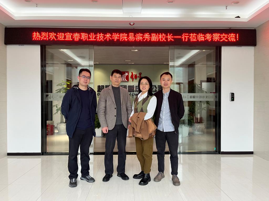 本站讯(教务处 李浩然)为进一步提升学校教育信息化建设水平,学习超星集团在教育信息化领域的先进经验,4月7日,副校长易滨秀、教务处处长熊杰平、信息工程学院书记罗来曦、教务处副处长李浩然一行访问了超星集团重庆分公司,进行了交流考察学习。