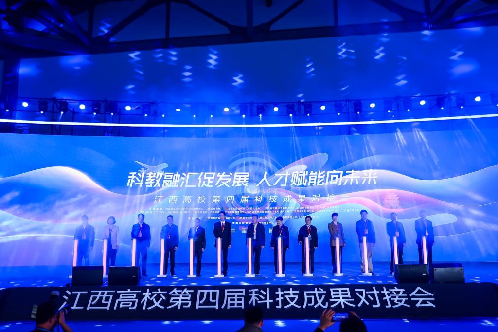 本站讯(科研处 谢巍)4月14日,以“科教融汇促发展,人才赋能向未来”为主题的江西高校第四届科技成果对接会在南昌绿地国际博览中心开幕。校党委书记任军,党委委员、副校长易滨秀出席开幕式,科研处、创新创业学院、社会合作办等相关部门负责人参加了本次成果对接会。
