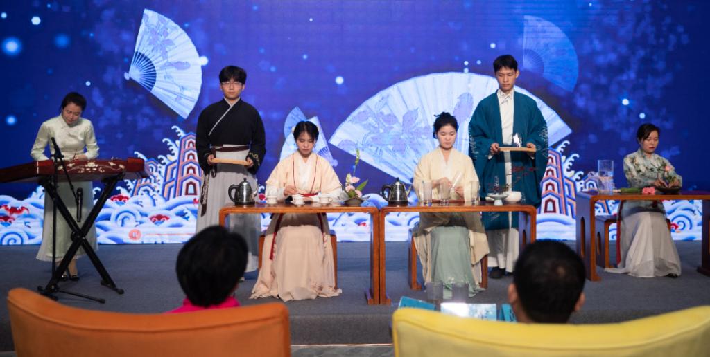 接下来,师生们声情并茂的诗词朗诵,仿佛穿越千年,抒发着诗人的家国情怀、爱恨情愁。《将进酒》《满江红》《木兰辞》《声声慢·寻寻觅觅》等,那些耳熟能详的经典名作,或气势磅礴,或宛转悠扬,或自由豪迈,或浪漫唯美。扬琴弹奏、太极拳表演、插花和茶艺等中国传统文化艺术的展示,让大家近距离感受传统艺术的独特魅力。