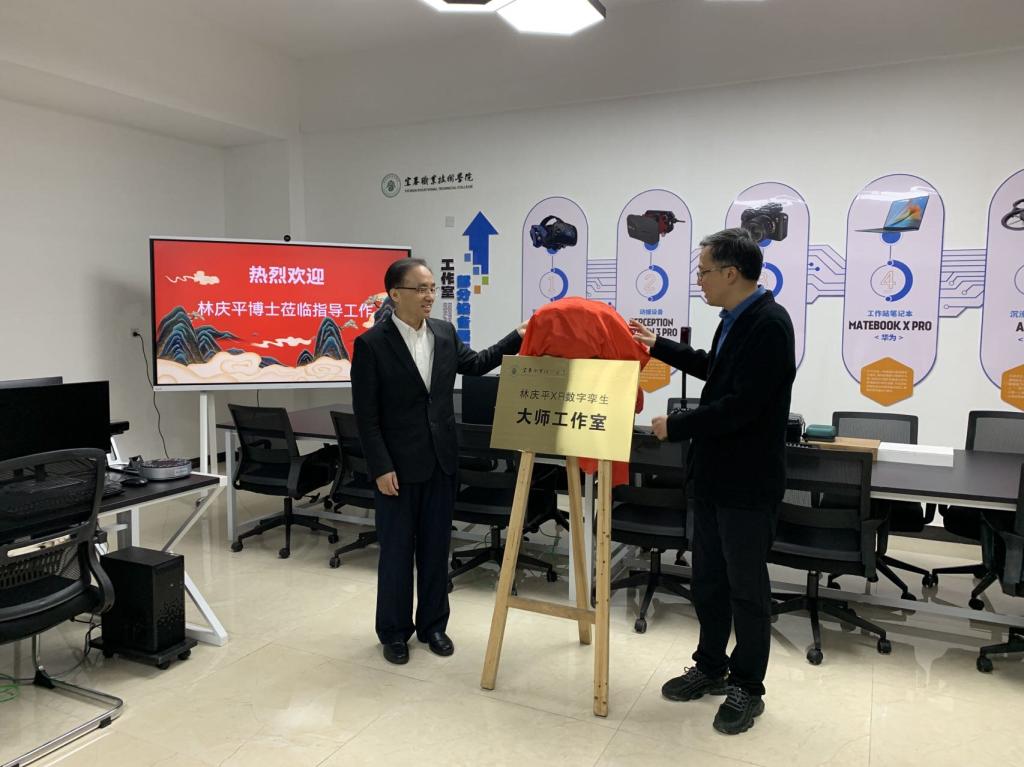 揭牌后,校企双方针对赣西综合虚拟仿真实训基地建设和2023金砖国家职业技能大赛、工作室如何赋能其他专业等方面进行了座谈交流,林庆平表示对大师工作室的落地感到非常高兴,并将不负学校及校领导期望,切实发挥工作室的纽带作用,为学校的专业建设及人才培养做出应有的贡献。座谈后,林庆平为虚拟现实技术应用专业师生作了专题讲座,分享了元宇宙行业发展的机遇与挑战。