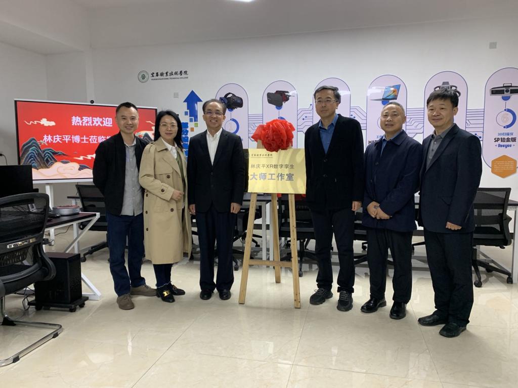 本站讯(信息工程学院 袁勋)4月24日上午,伟德官网与厦门凤凰创壹软件有限公司共建的“林庆平XR数字孪生大师工作室”揭牌仪式在伟德官网智云楼B201举行。厦门凤凰创壹软件有限公司董事长林庆平、CEO王巧林、经理付大凯、吴清秀,伟德官网党委副书记、校长邱军,副校长易滨秀、廖秋劲,信息工程学院党总支书记罗来曦等参加揭牌仪式。