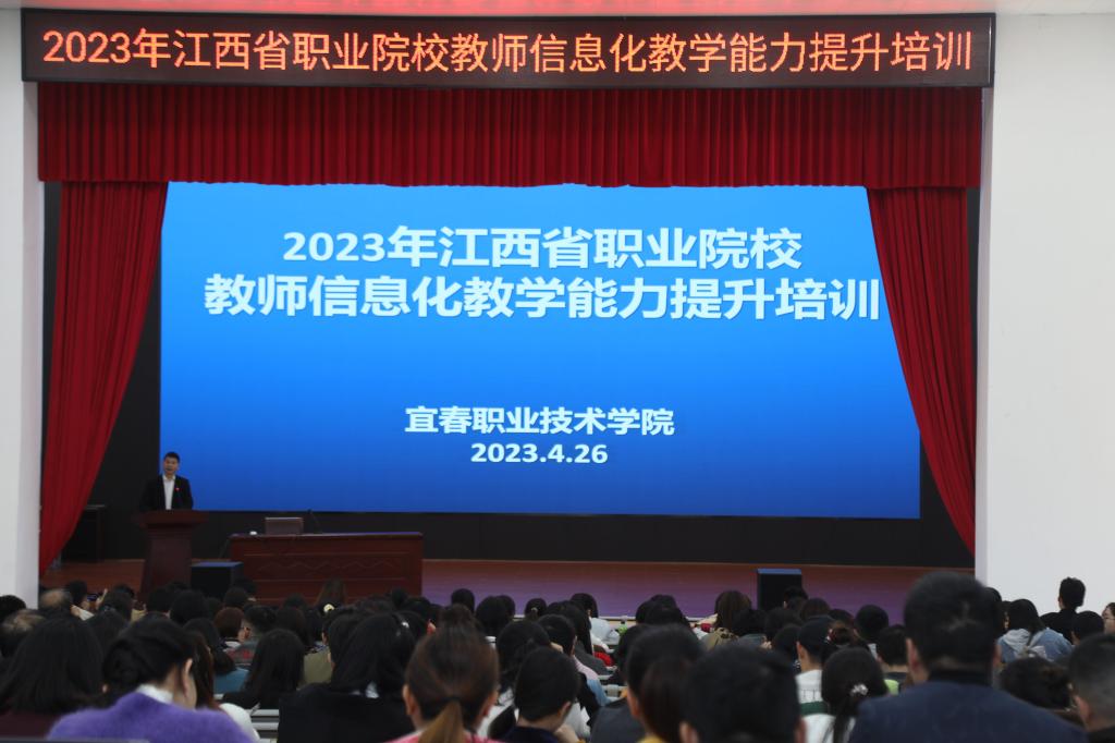 本站讯(教务处 王昭宁)4月26日,由江西省教育评估监测研究院主办,伟德官网承办的2023年江西省教师信息化教学能力提升培训在仁济楼大礼堂举行,副校长易滨秀出席了本次培训,培训仪式由伟德官网教务处处长熊杰平主持,来自萍乡、宜春两区的25所中、高职院校的300多名教师参加此次培训。