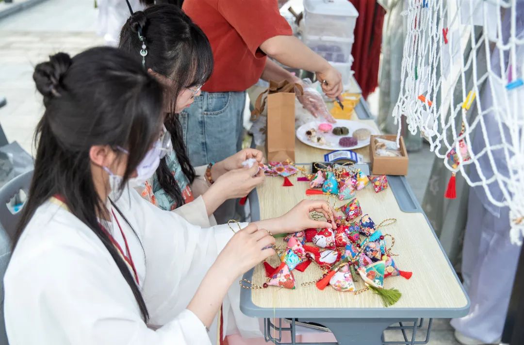 经济管理学院展位上精妙的摆盘、美味的糕点,国际教育学院清心悦目、独具特色的蜡染作品,吸引过往师生驻足欣赏。各类社团在文化艺术节上的精品表演激情四射、点燃全场,充分展示了社团良好的精神风貌与文化底蕴。