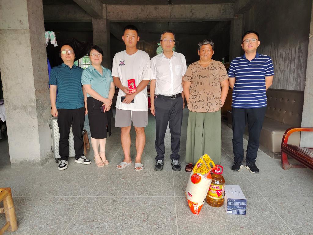 本站讯(护理学院 胡蓉)为深入学习贯彻党的二十大精神,全面落实立德树人根本任务,充分发挥学校育人功能,6月20日,校党委副书记、校长邱军带领护理学院院长吴少林、党总支书记胡蓉,校友办副主任林先梅一行4人,前往袁州区南庙镇护理学院学子江景平同学家中开展爱心家访活动。
