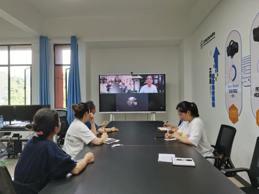 本站讯(信息工程学院 李纪杨)6月27日下午,厦门凤凰创壹软件有限公司董事长林庆平与信息工程学院党总支书记罗来曦、院长简靖韡、副院长陈根金及虚拟现实专业相关教师在智云楼B201(林庆平XR数字孪生大师工作室)召开了线上交流会。