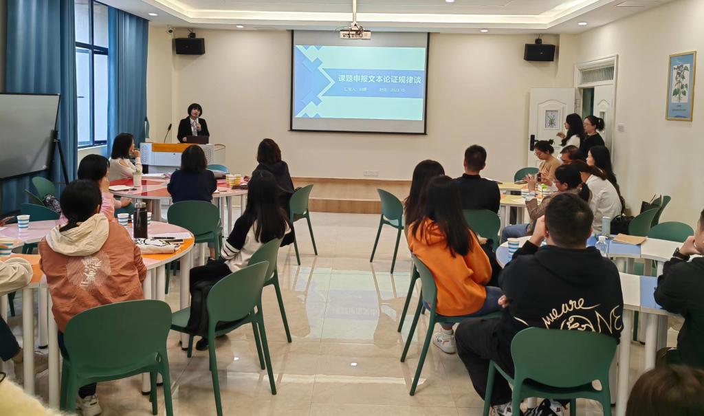 本站讯(科研处 魏微)10月10日下午,科研处在日新楼心理健康教育中心团体活动室举办课题申报文本论证规律谈沙龙。本次沙龙由乡村振兴研究所副所长刘媛副教授主讲,科研处处长敖美蓉主持,学校70余位教师参加。