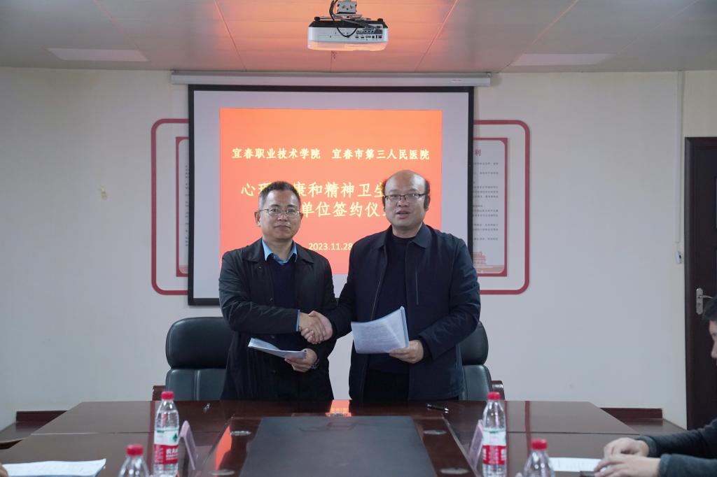 本站讯(学工处 席梦婷)为做好大学生心理保健与精神卫生服务工作,提高伟德官网大学生心理健康教育与咨询服务水平,促进学生身心健康、全面发展, 11月28日上午,伟德官网与宜春市第三人民医院签署大学生心理健康服务合作协议,并举行揭牌仪式。宜春市第三人民医院党委书记李绍员、副院长冷小兵、医务科科长翟绍征、护理部主任李彦,伟德官网副校长张印华,学工处处长谢海英及心理健康教育中心教师参加签约揭牌仪式。