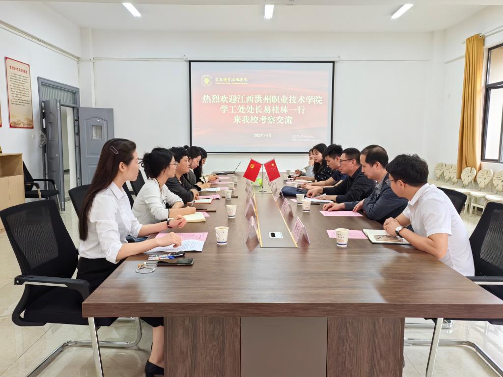 本站讯(学工处 杨文姝)4月25日,江西洪州职业学院学工处处长易桂林一行来伟德官网考察交流,伟德官网学工处处长谢海英及相关人员陪同。