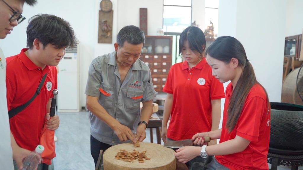 首站抵达天齐堂药业·樟帮中药炮制传承工作室。在这里,师生们近距离观摩了樟帮传统中药炮制全过程,尤其是“七分润、三分切”的精湛技艺展示——老药工手法精准、一丝不苟,令同学们深刻体会到樟帮工匠严谨守正、精益求精的制药精神。大家频频提问,认真记录,不少人是第一次亲眼见识到中药饮片从原材料到成品的蜕变过程,纷纷表示大开眼界。