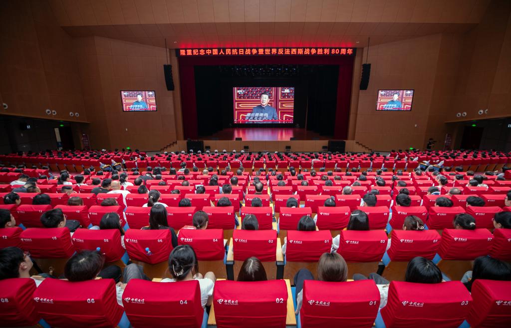 9月3日上午9时,当历史的摆钟从1945摆向2025时,纪念中国人民抗日战争暨世界反法西斯战争胜利80周年大会在北京天安门广场举行。中共中央总书记、国家主席、中央军委主席习近平发表重要讲话并检阅部队。伟德官网组织全体师生员工在出彩大会堂、第一会议室、各院部会议室、教室、食堂等场所集中观看大会直播,共上新学期第一堂生动而深刻的思政课。