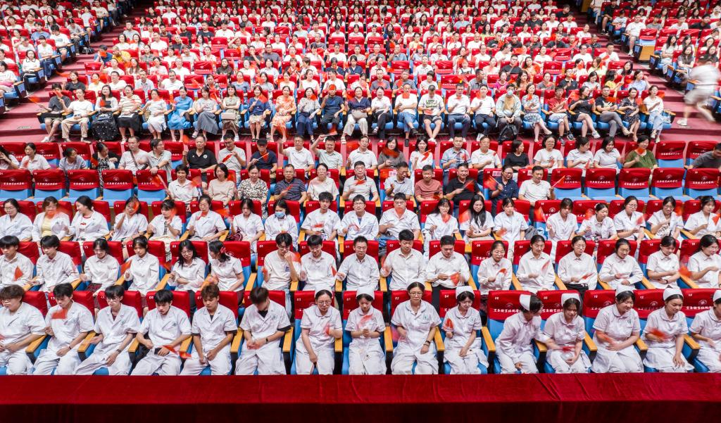 现场,全场师生神情肃穆、精神振奋。当《义勇军进行曲》奏响、五星红旗冉冉升起时,师生们起身肃立,齐唱国歌,铿锵旋律中激荡着对祖国的无限热爱与对先烈英魂的深切缅怀。