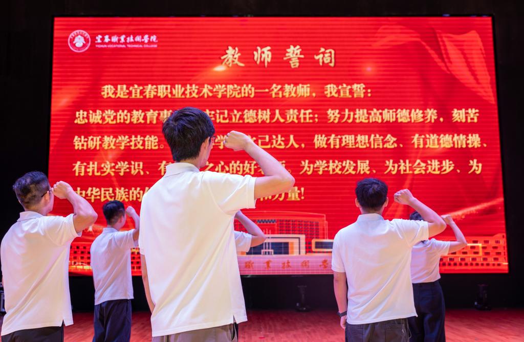 大会号召全校教师向榜样学习,勤勉工作、奋勇争先,努力把学校建成特色鲜明、国内一流的高水平职业院校,为教育强国建设贡献宜职力量。