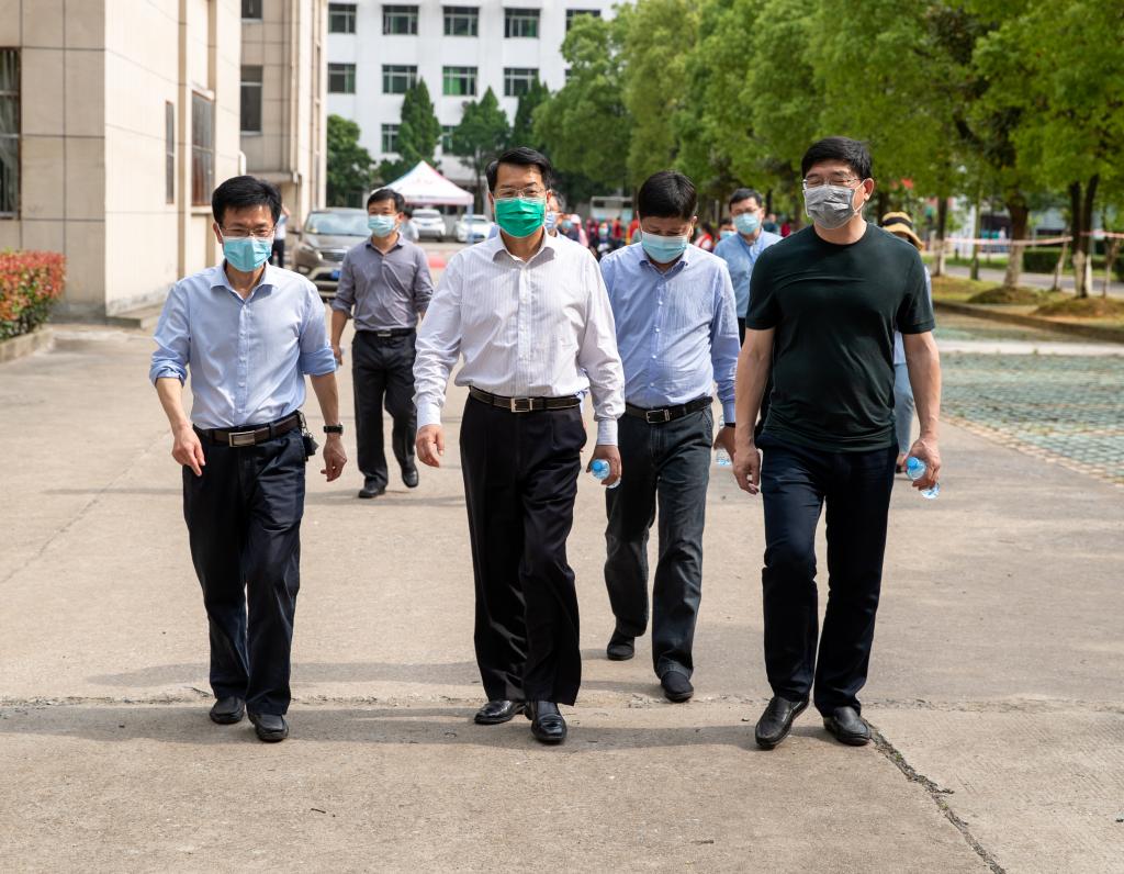 本站讯(党委宣传部 陈畅)4月30日,正值伟德官网学生即将返校复学之际,为充分做好学生返校复课准备和开学后校园疫情防控工作,确保师生身体健康和生命安全,伟德官网在校本部与南校区分别开展了春季学生返校疫情防控演练。市委常委、宣传部长袁川,市教育体育局局长袁志平,市卫健委主任余定新,市疾控中心副主任、首席专家陈钊一行来到伟德官网南校区,督察返校复课准备情况并现场指导。