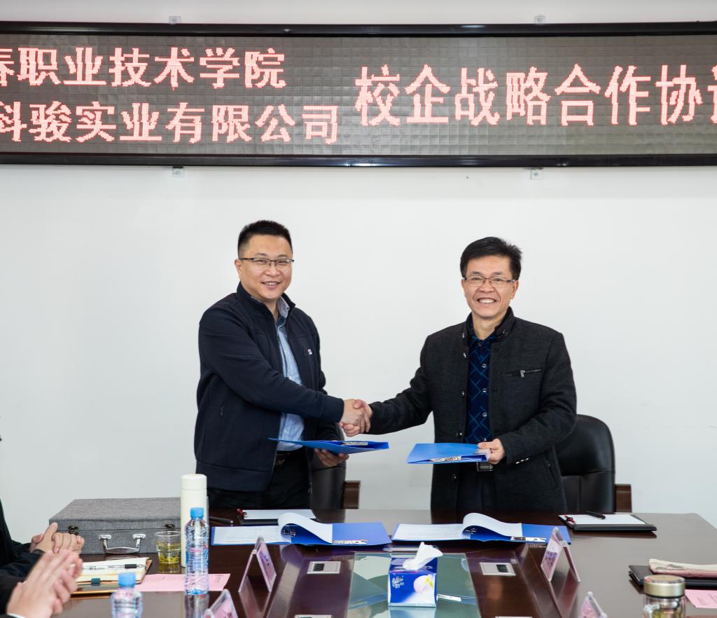 本站讯(教务处 吴少林)为贯彻落实《国家职业教育改革实施方案》、《教育部江西省人民政府关于整省推进职业教育综合改革提质创优的意见》等文件精神,积极推进职业教育提质培优,深化产教融合、校企合作及精准对接产业的技术技能人才培养,12月30日,伟德官网与江西科骏实业有限公司在科技综合楼615会议室举行校企战略合作的签约仪式。