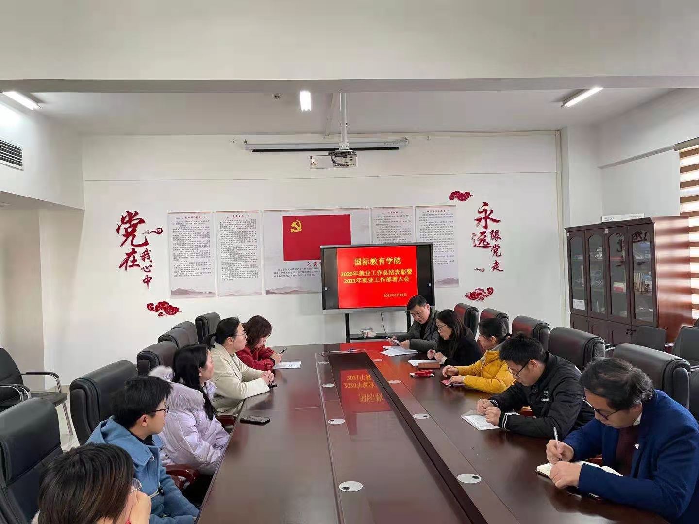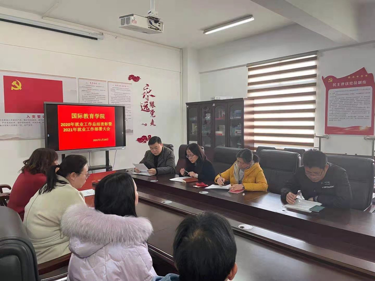 本站讯(国际教育学院 杜欣宇)为进一步推进国际教育学院就业工作的长足发展,1月19日下午,国际教育学院于科技综合楼401召开2020年就业工作总结表彰大会暨2021年就业工作部署会。院长韩菁、党总支书记刘海云、副院长肖勇、全体学工人员、相关班主任、辅导员参加了此次会议,会议由学工干事杜欣宇主持。