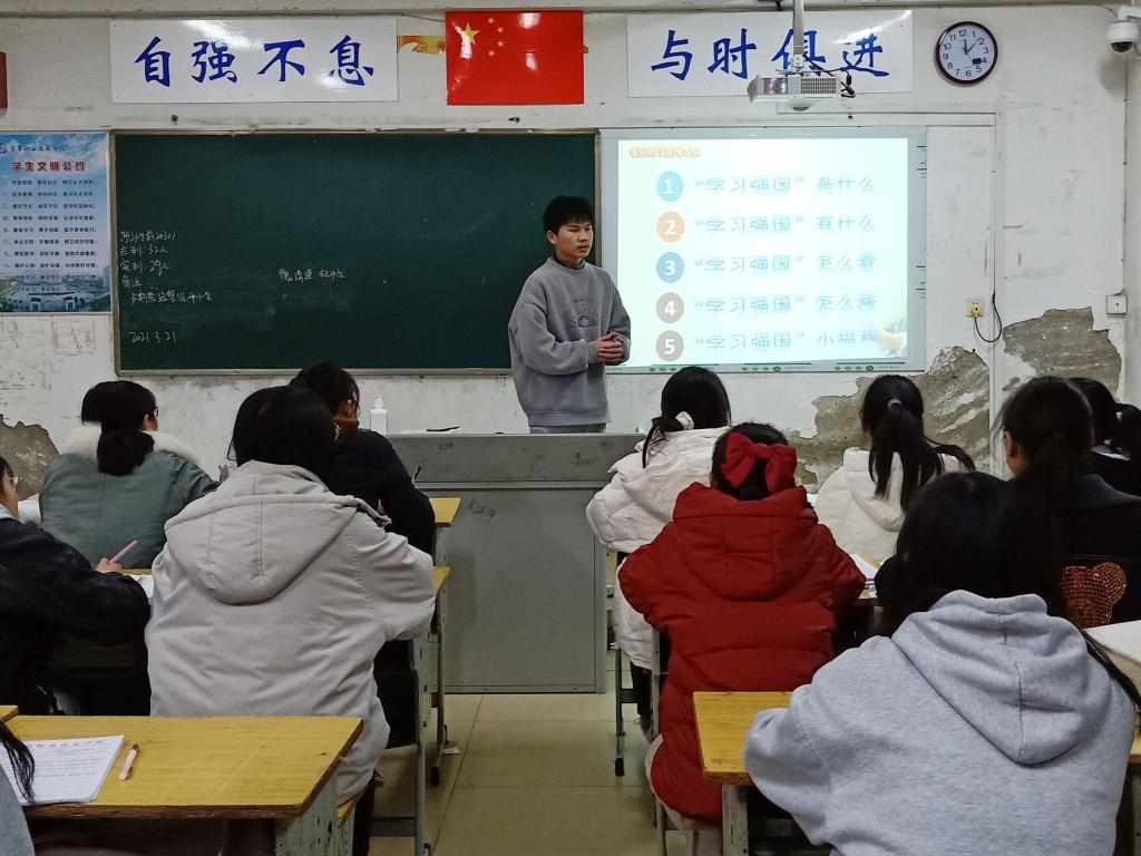 本站讯(国际教育学院 朱媛)为引导更广大团员青年更科学、更高效地利用“学习强国”开展政治理论、专业素养等方面的学习,3月21日晚自习期间,国际教育学院18高英教班的潘晓等十名“学习强国”积极分子分别进到2020级各班开展学习强国APP学习经验分享交流会。