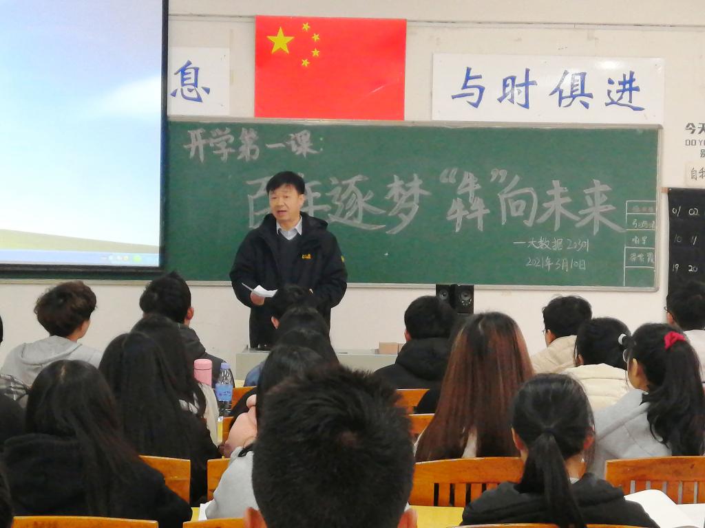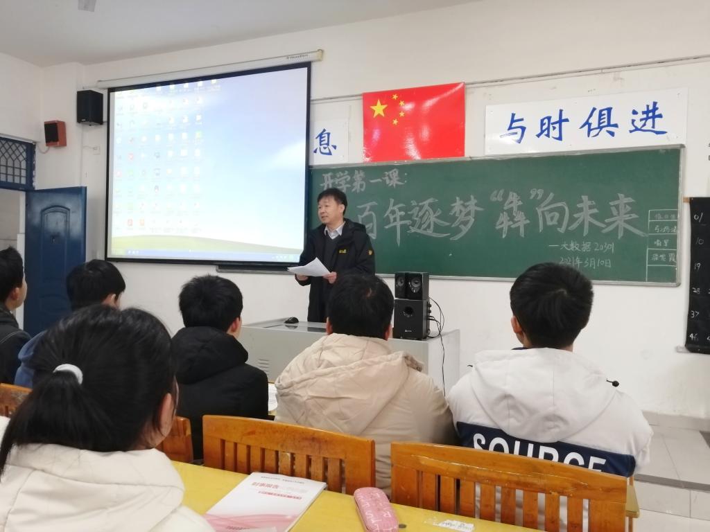 本站讯(信息工程学院 谢小欣)新学期伊始,为让同学们更全面深入地学习中国共产党百年逐梦的历史,通过党史学习不断汲取养分,积蓄能量,激发学习激情,3月10日上午,副校长廖秋劲在信息工程学院为2020级学生带来了一场精彩的主题为“百年逐梦,‘犇’向未来”的开学第一课。