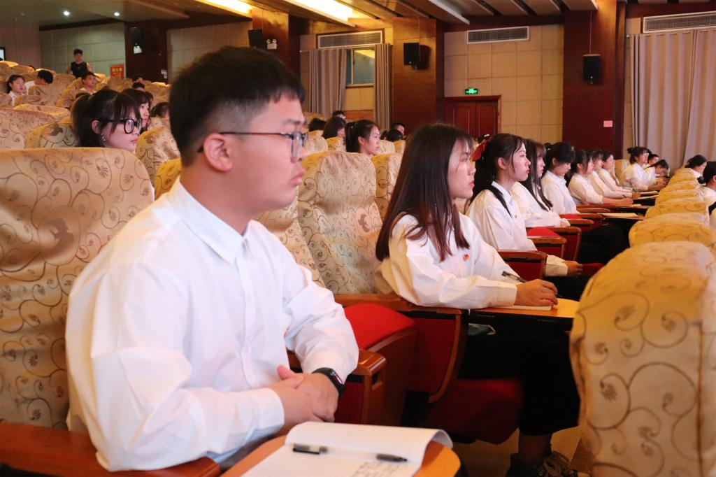本站讯(团委 梅应轩 学生记者 苏钰)为深入学习贯彻习近平总书记关于青年工作的重要思想和习近平总书记在党史学习教育动员大会上的重要讲话精神,培养新一批政治坚定、作风优良的青年马克思主义者,5月11日晚,伟德官网于科技综合楼二楼学术报告厅举行2021年“青马工程”大学生骨干第一阶段集中培训班开班典礼。校党委委员、副校长张印华、学工处处长谢海英、马克思主义学院院长彭慧洁、各院党总支书记及团总支书记出席本次典礼,共计200名大学生骨干和优秀青年学生代表参与本次活动,开班典礼由校团委书记施旸主持。