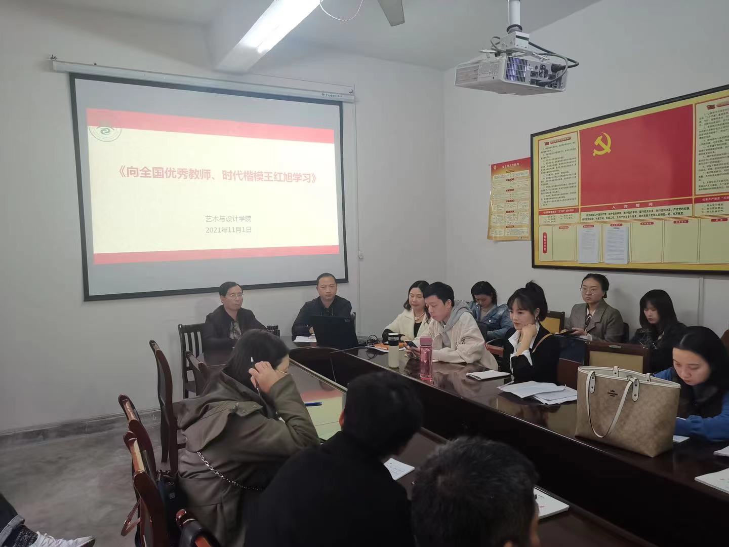 本站讯(艺术与设计学院 吴卿妍)11月2日下午,艺术与设计学院组织全体教师在科技楼三楼会议室向全国优秀教师、时代楷模王红旭同志先进事迹学习活动。