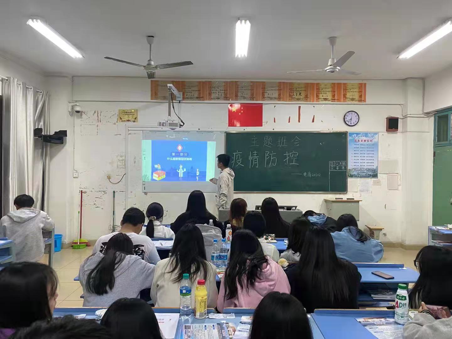 班会开始,各班首先围绕“疫情防控”,向全体同学普及了疫情防控知识以及各类安全知识。其次,强调在封校期间,学生不得私自离开学校,并且要时刻注意疫情防控、做好个人防护,在人员密集的场合要佩戴好口罩,若出现体温异常,要及时上报到班主任。最后,提醒同学们,防疫不放松,要做到科学防护。