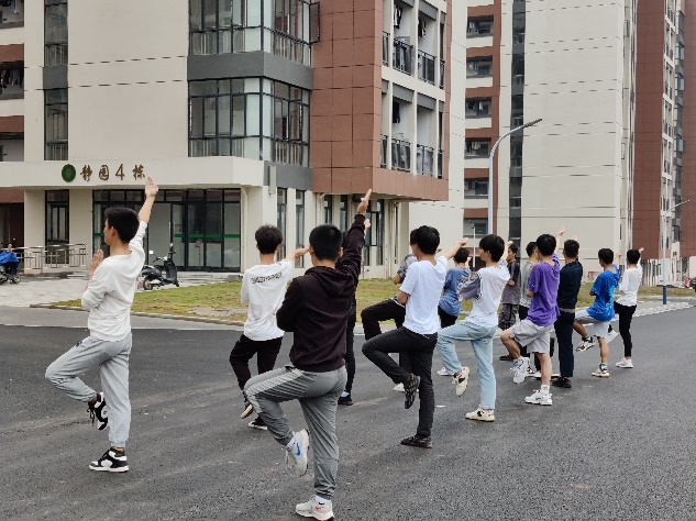 除了晨跑,此次晨练项目还包括了五步拳。五步拳是中国传统武术拳法之一,其主要特点就是动作较少,结构简单,便于学习和掌握,最适合作为初学者的同学们练习。