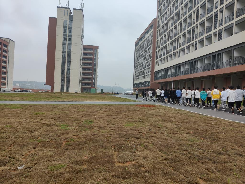 7点30分,同学们准时到宿舍楼下集合,各班长统计人数后,在辅导员老师的带领下,同学们进行了一整套热身活动后,开启跑步运动,目标绕西区跑两圈。
