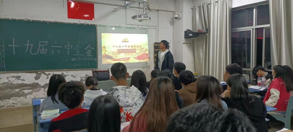 本站讯(电商与旅游学院 马思源 郭雪梅)不忘初心,牢记使命。在庆祝中国共产党百年华诞的热烈气氛当中,在“两个一百年”奋斗目标的历史交汇期,中国共产党迎来了又一次意义重大的盛会。为了学习贯彻党的十九届六中全会精神,电商与旅游学院于11月9日晚上7:00在各班组织开展了学习“党的十九届六中全会精神”主题团日活动,各班以主题分享、观看相关视频等方式进行。
