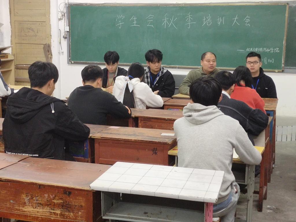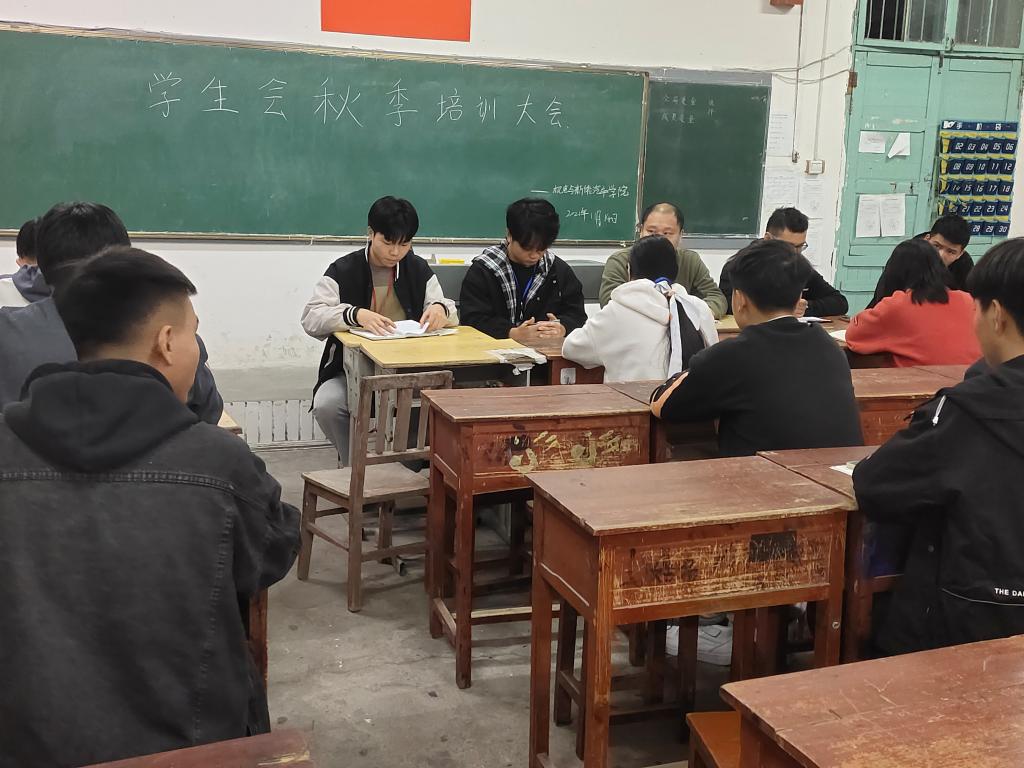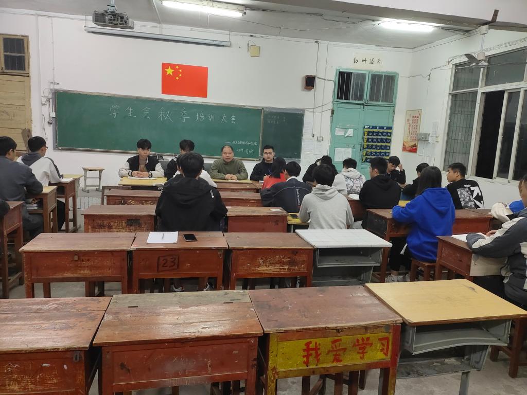 本站讯 (机电与新能源汽车学院 周勤 学生记者 邹雨晴)为加强学生会骨干队伍建设,提高学生会工作人员的综合素质,11月14日晚机电与新能源汽车学院学生会在第二教学楼四楼办教室召开了学生会工作人员秋季培训大会。本次培训由我院学生会执行主席彭思文主持,我院全体学生会工作人员参加了此次会议。