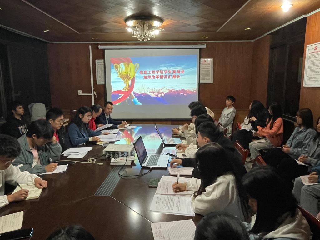 本站讯(信息工程学院 刘嘉妮 学生记者 王雅娉)11月14日晚上,信息工程学院召开了学生会组织深化改革汇报会议,出席会议的有院党总支书记罗来曦、副书记简靖韡、学工科科长李纪杨。