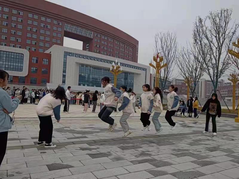 本次比赛为计时赛,各班以班级为单位,两个同学摇绳,五个同学在中间一起跳。随着裁判员的一声令下,长绳在空中翻转,让大家眼花缭乱,选手们整齐轻盈的跳姿勾勒出青春活力的身影。摇绳的队员时刻专注着,配合跳绳选手的节奏,尽可能的减少失误。同学们整齐的口号声、热烈的加油声在广场上久久回荡。经过几轮紧张的角逐,最终由护理21304班荣获一等奖。