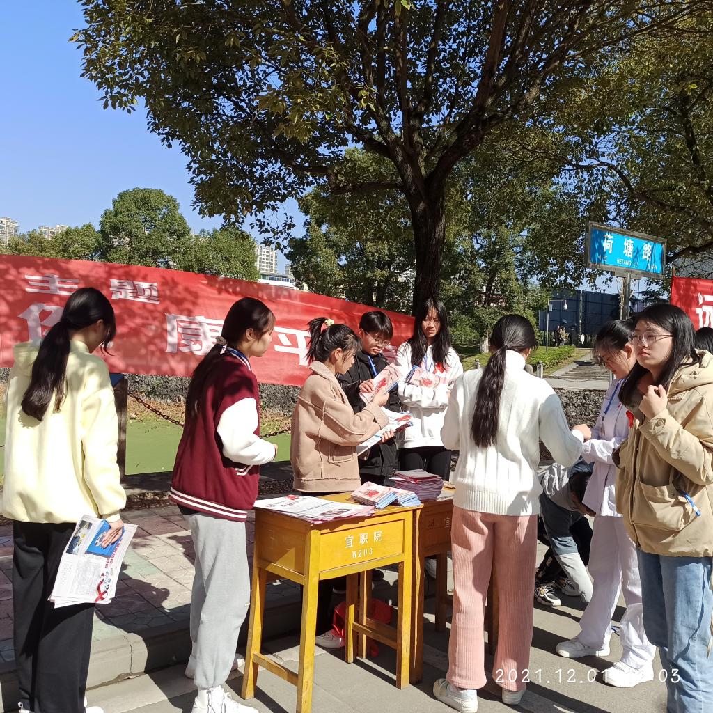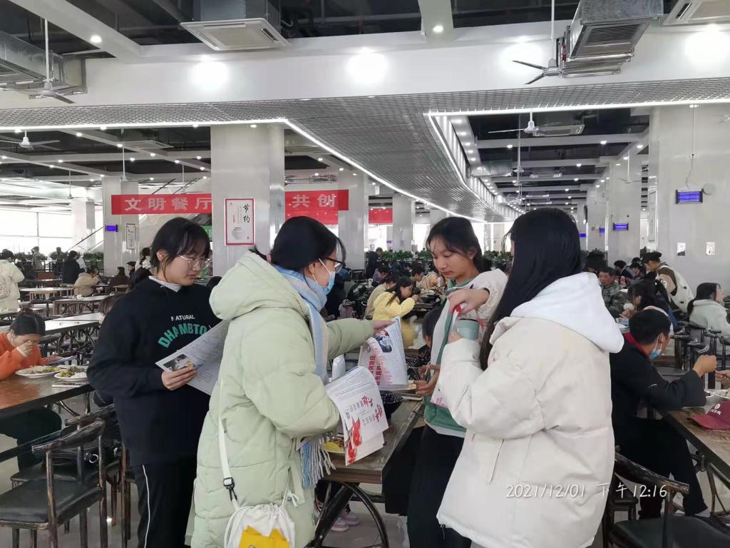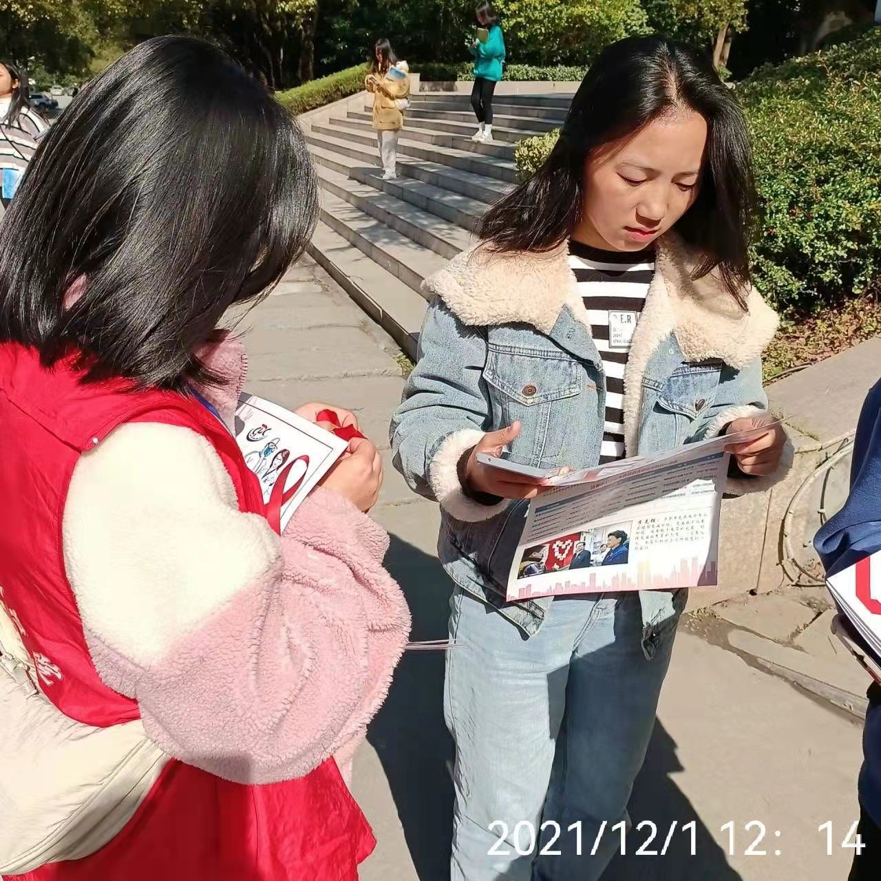 活动开始,志愿者们为学校师生发放了防艾宣传单等宣传资料,并进行了问卷调查和现场咨询活动,为同学们解答了有关艾滋病的问题,同时为2021年全省大学生青春健康网络知识竞赛活动进行宣传。