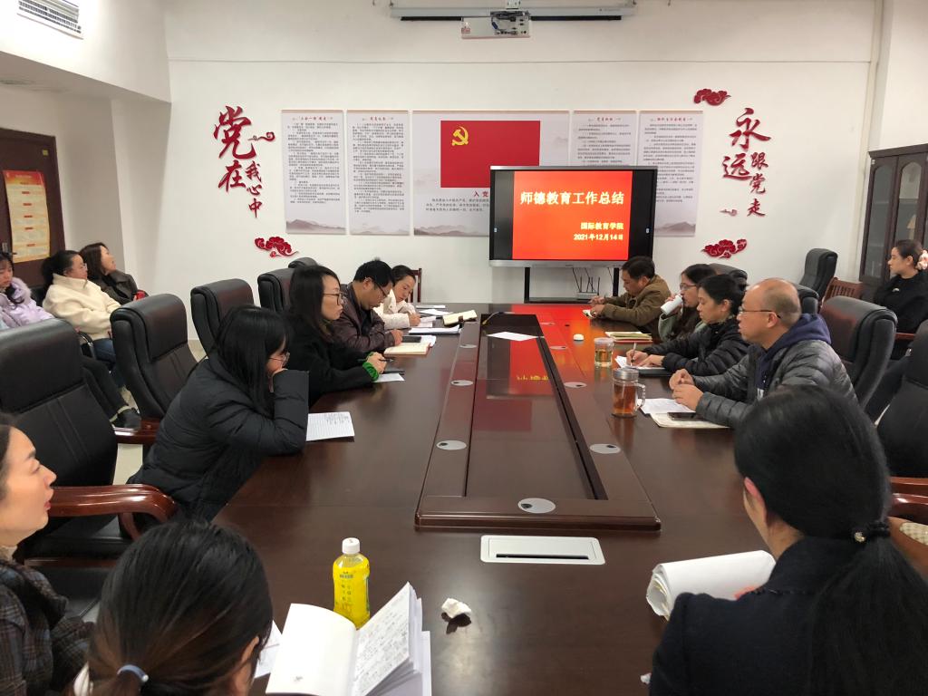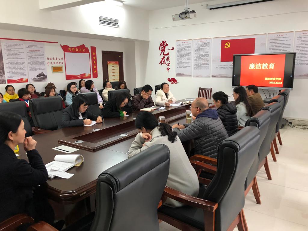 本站讯(国际教育学院 颜灵仪)12月14日下午,国际教育学院在科技综合楼401会议室召开了全体教师大会,会议由院长韩菁主持,党总支书记刘海云、党总支副书记杨敏、副院长肖勇及全体教职工参加会议。