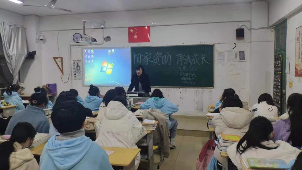 会上各班主任首先向同学们介绍国家在高等教育阶段建立起了国家奖学金、国家励志奖学金、国家助学金、国家助学贷款等多种形式有机结合的高校学生资助政策体系,目标是从制度上保障不让一位同学因家庭经济困难而失学,从政策上鼓励同学家们积极上进,成为国家有用之才。班主任们随后进行“感恩”教育,告诫同学们要懂得感恩,感谢党和国家对贫困学生的帮助,并且在今后的人生道路中要努力成长为关爱他人,关心社会,有博爱精神的人。