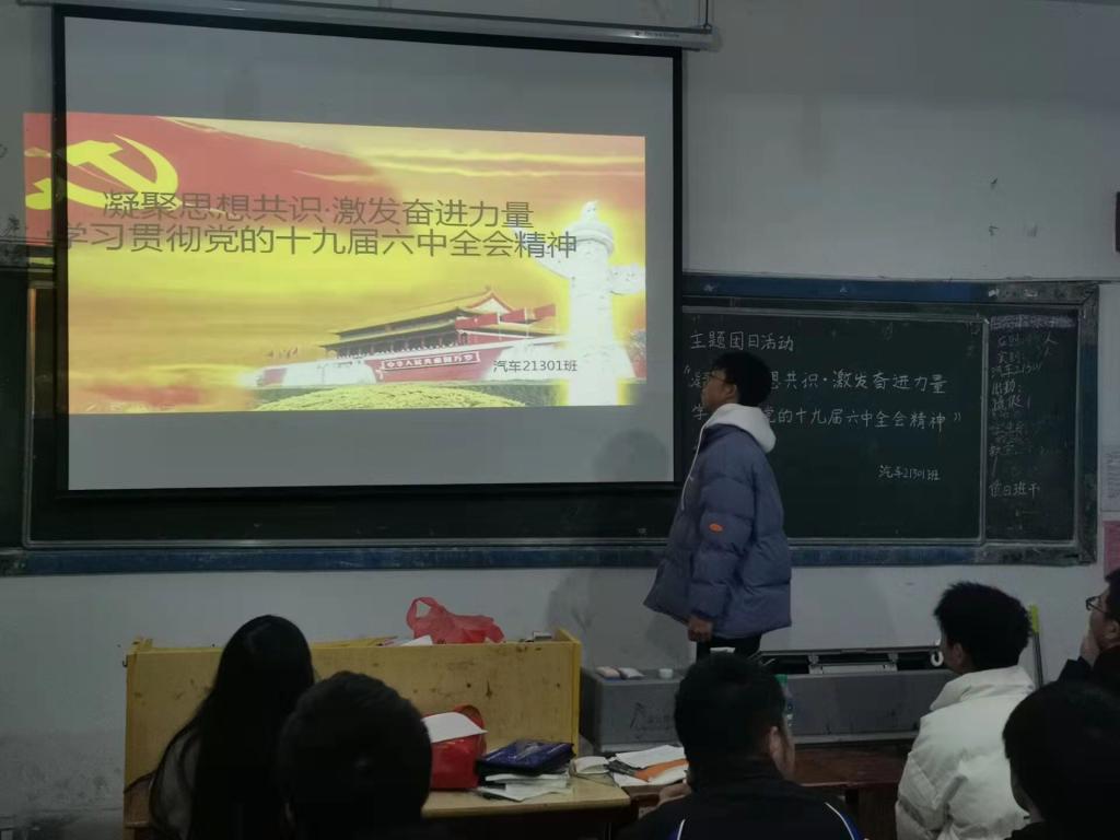 本站讯(机电与新能源汽车学院 周勤 学生记者 刘鑫)为深入学习贯彻党的十九届六中全会精神,引导我院青年学子积极跟进党的先进思想,大力弘扬伟大建党精神,坚守理想信念、牢记初心使命。我院于12月28日晚对各班级开展“凝聚思想共识·激发奋进力量——学习贯彻党的十九届六中全会精神”主题团日活动。