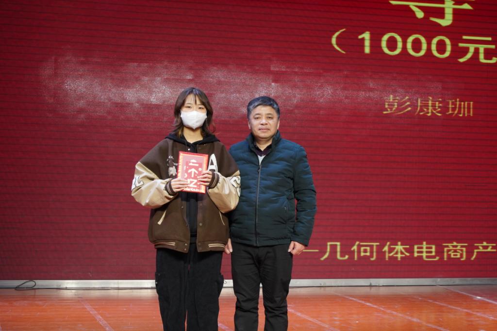 大会对2021年进行了经验总结,并表彰了此次实践项目中表现突出的学生,其中几何体电商产业学院负责人文玉泽公布获奖名单,统计45天的实训项目的综合评分,获奖名单如下:一等奖:彭康珈;二等奖:符佳丽、张冰慧;三等奖:吴小颖、何艳红、罗文斌;优秀组长:曾才秀、周娅男;最佳高效员工奖:周嘉圣、肖梦莹、黎思敏;最佳敬业奖:周刚强、项铭宇等;最佳服务奖:汪蒙;