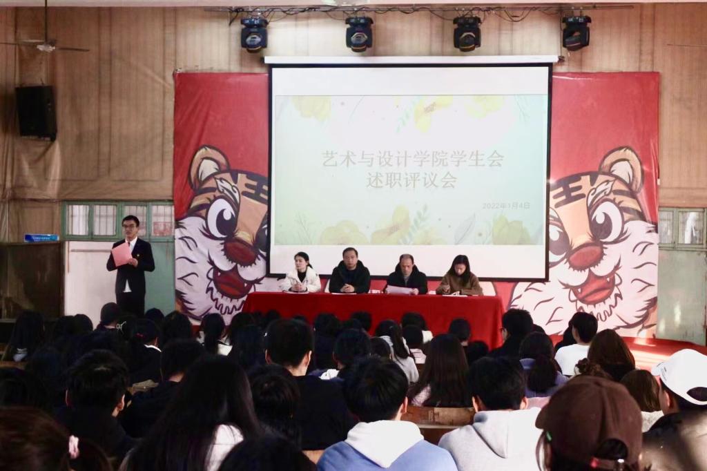 本站讯(艺术与设计学院 吴卿妍)为推动我院学生会工作更好更强更长久的发展,提高学生会工作人员的积极性及总结过去一学期的工作,同时对本学期学生会优秀干事进行表彰。艺术与设计学院于2022年1月4日下午在科技楼阶梯教室举行学生会述职评议会和总结大会。艺术与设计学院党总支书记罗平、党总支副书记兰七荣、团总支书记吴卿妍、学工科科长郑立波、辅导员谢巍、辅导员周熙,以及学生会全体成员、学生代表参加了会议。